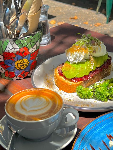 The shakshuka was unfortunately SWIMMING in oil, which was absolutely shocking for me. I’m sorry but you can’t call this shakshuka. The “eggcelent toast” was only 2 eggs on 2 slices of toast. No veggies or anything on the side. Adding mushrooms or avo costs $5 which seems way too overpriced. The coffee tasted burnt and needs some adjustment. Unfortunately, we felt extremely disappointed by this brunch experienced and it felt a bit like a tourist trap. The vibe outside was alright and shady. Service was friendly. Sadly I can’t recommend this venue.