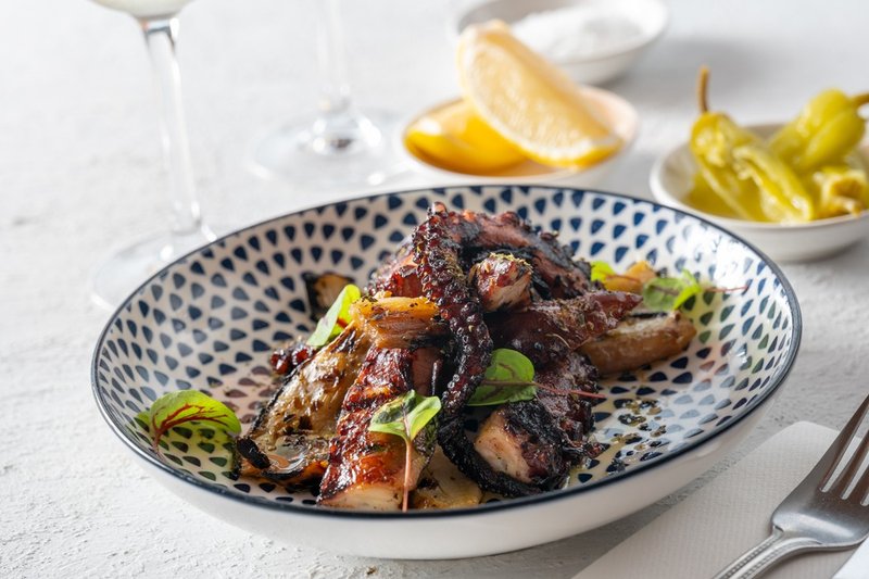 I had won a meal at Nostimo a while ago. The fishes were no longer in the menu but they honoured the value of the prize. The menu was so inviting we decided on meze plates. What an absolute flavour delight. We shared prawn saganaki, chargrilled octopus with fennel & orange and lamb souvlaki. Each dish was a flavour triumph. We tried the bougatsa for dessert. It was definitely worth the wait. We had a glass of Skouras Assyrtiko which has a great mouth feel & structure with good minerality & citrus notes. It matched our meal perfectly. This experience far outweighed our expectations. Weโll definitely be back.
